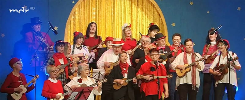 Die Fröhlichkeit der Ukulele sorgt dafür, dass sich immer wieder Spieler in Gruppen zusammenfinden, die gute Laune teilen und dabei erstaunliche Dinge auf ihrem Instrument zustande bringen. Ich leite diese Gruppen an, unterstütze sie und spiele – natürlich! – mit. Und was gibt es Besseres, als den Spaß unter „Gleichgestrickten“ mit einem Publikum zu teilen?